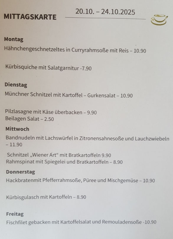Ob Frühstück, täglich wechselnder Mittagstisch oder Kaffeezeit mit selbstgemachten Kuchen und Torten, unser Angebot ist reichlich. Ihr Hund darf selbstverständlich dabei sein. Bei Elefanten bitte kurze Rücksprache.